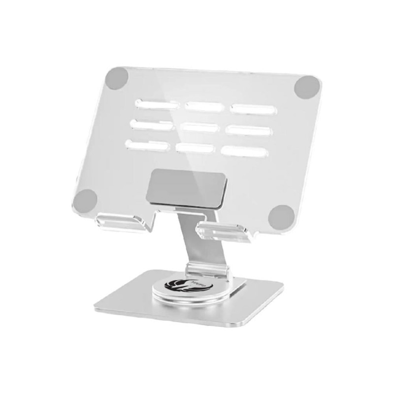 مصنوع من معدن سبيكة الألمنيوم والأكريليك القوي، يوفر هذا الحامل قاعدة متينة وثابتة لجهازك، مما يضمن بقائه في مكانه بأمان أثناء الاستخدام.
