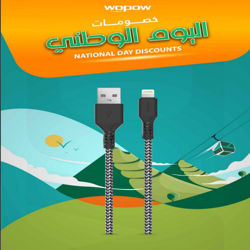 سلك شاحن ايفون قماشي مقاوم للقطع من وبو 2 متر سلك اسود
