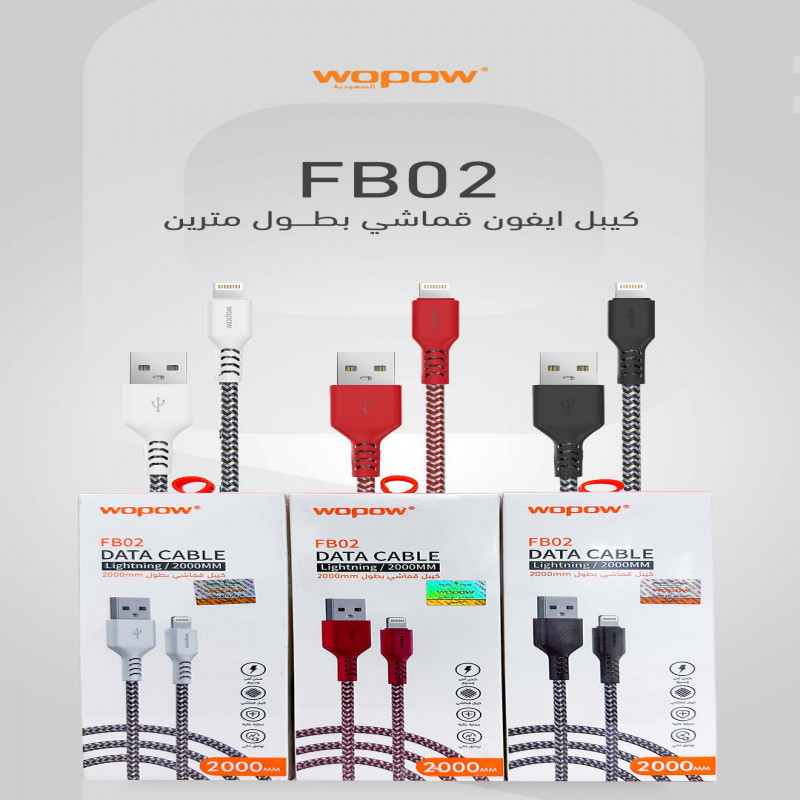 سلك شاحن ايفون قماشي مقاوم للقطع من وبو 2 متر سلك اسود