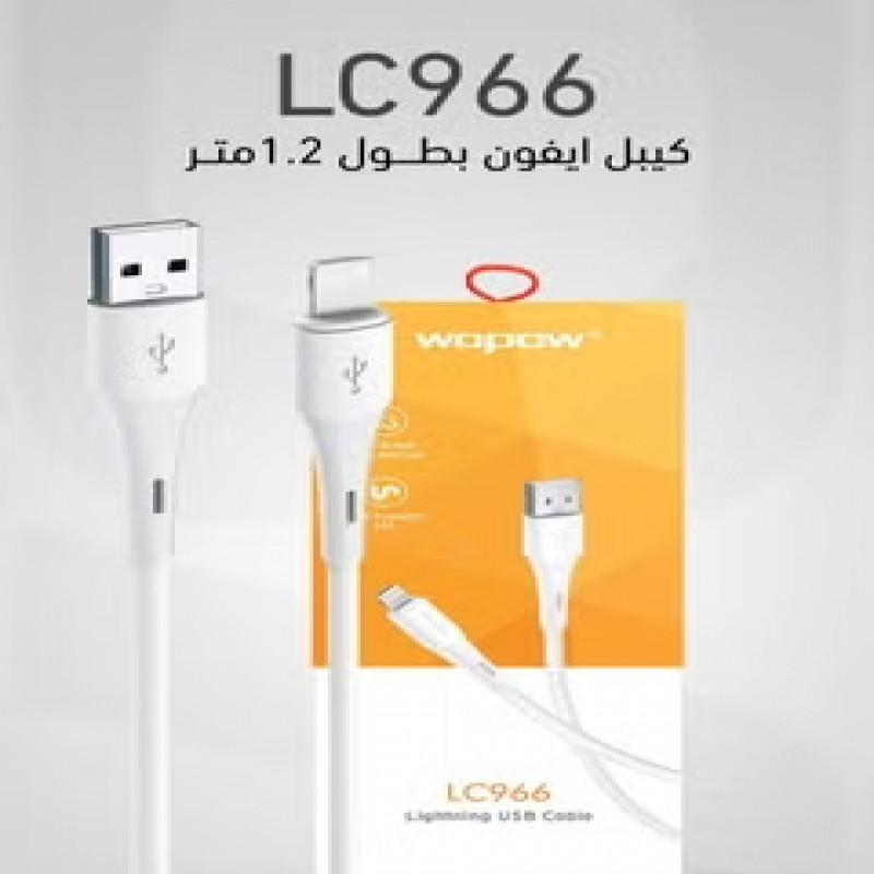 كيبل ايفون اصلي لايتنج بطول 1.2 متر أبيض LC966 بكج 10 كيابل + دبوس شريحة هدية