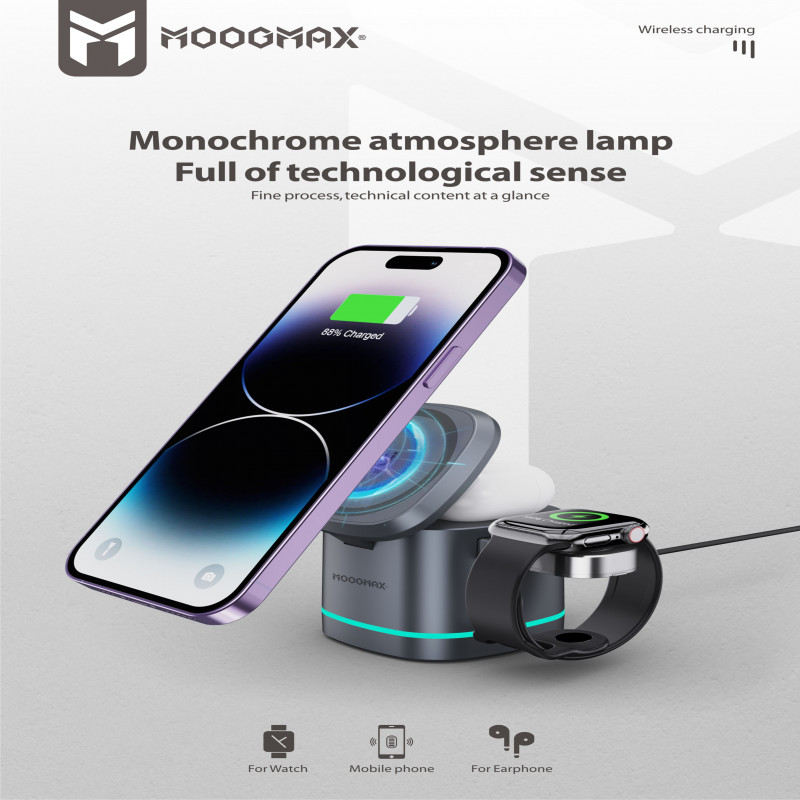 شاحن لا سلكي 3 في 1 بقوة 30واط