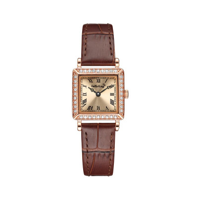 ساعة نسائي من هالو كيتي 23016 جلد بني ميناء ذهبي