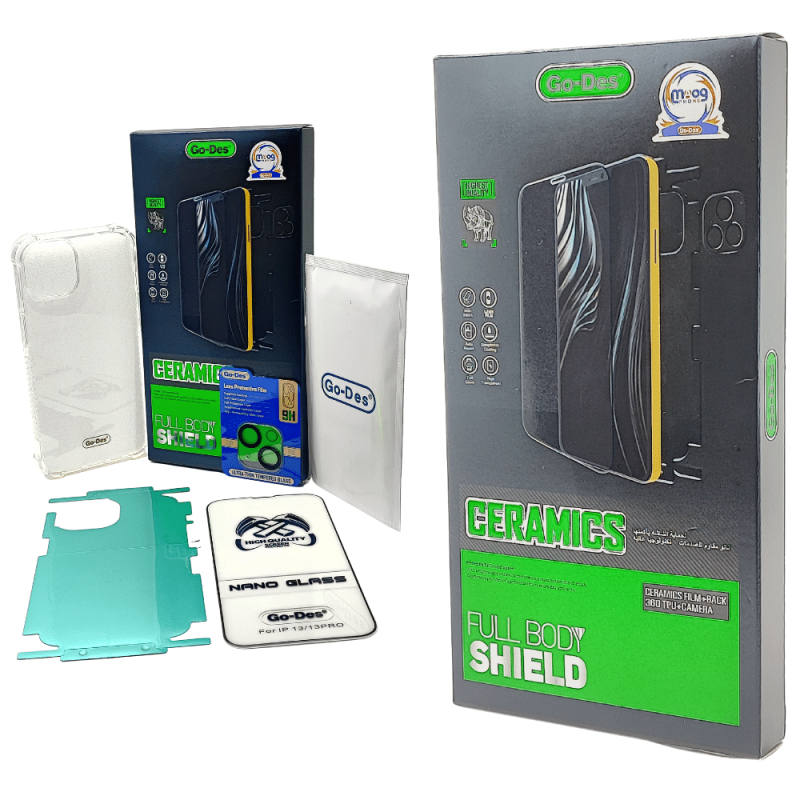 بكج حماية 4 في 1 نانو من السراميك 360 درجة مع حامي كاميرا لحماية جوالك من السقوط والصدمات ايفون 13 برو ماكس - iPhoneiPhone 13 Pro Max من GO-DES
