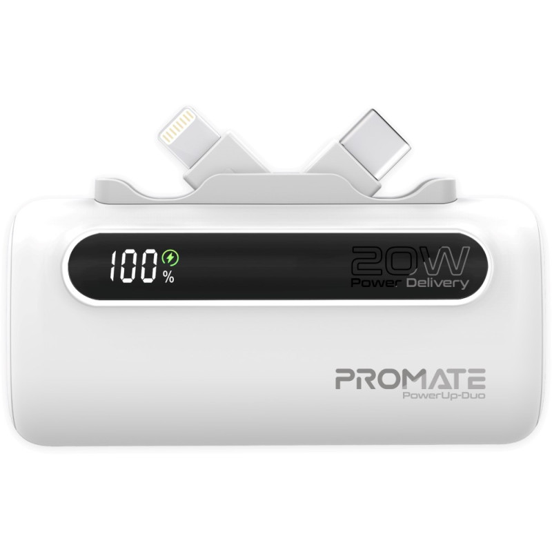 PowerUp-Duoهي بطارية متنقلة صغيرة للغاية على شكل كبسولة، مع منفذ USB-C™ (إدخال/إخراج)، وموصلين مدمجين قابلين للطي، USB-C™ و لايتنينغ ، لشحن جهازين بسرعات فائقة أثناء التنقل. يتميز بنك الطاقة المتعدد الاستخدامات هذا بسعة 5000 مللي أمبير ومنفذ USB-C™ (إدخال/إخراج)، مما يتيح لك شحن البطارية المتنقلة بسرعة وكفاءة.