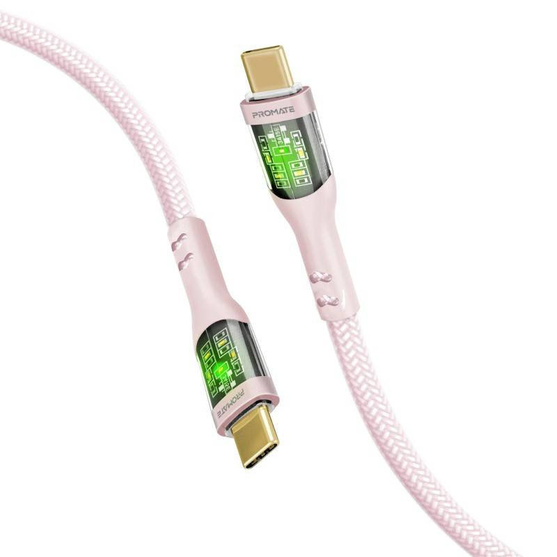كيبل شحن تايب سي إلى تايب سي بطول 2 متر فائق السرعة يشحن بقدرة 60 واط مزود برأس شحن شفاف مطلي بالذهب ويدعم نقل البيانات والشحن السريع بضوء LED مقاوم للانحناء حتى 25000 مرة - TransLine-CC200
